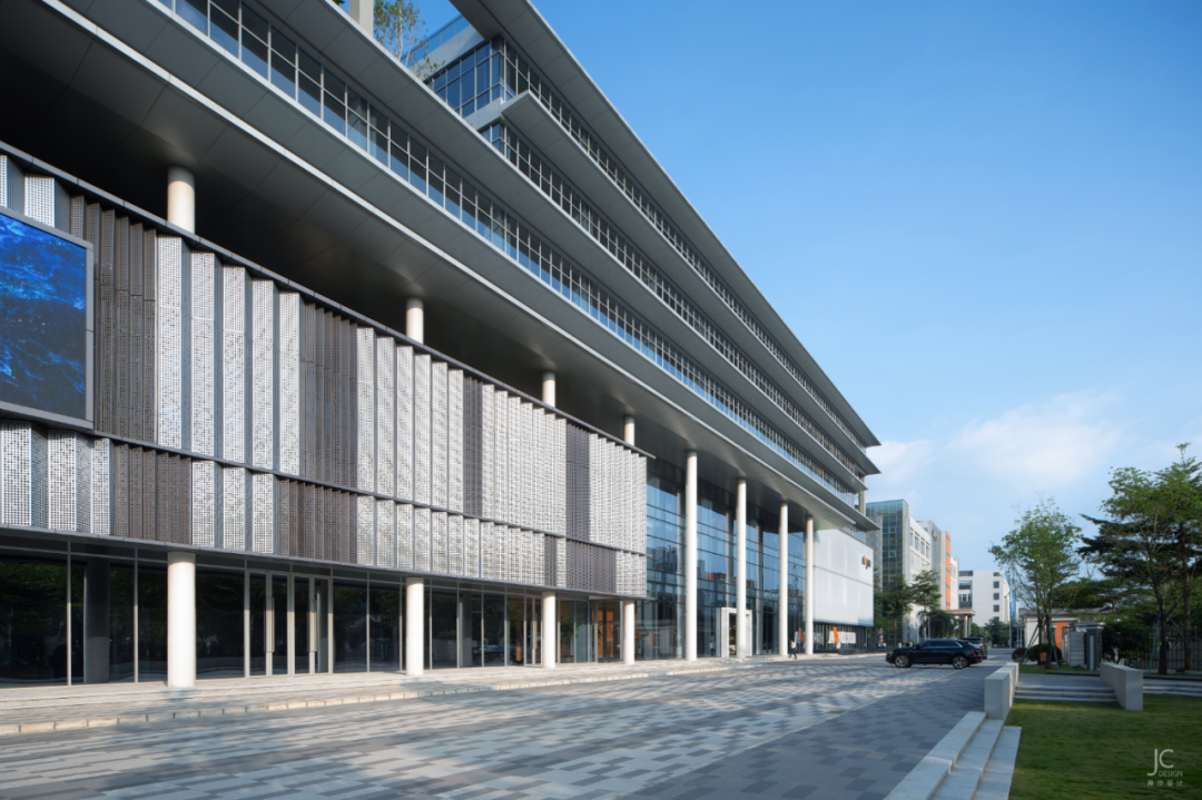 为彰显企业文化与突出个性标识,外在的视觉表现与内在的韵味表达显得尤为重要。通过提炼经典建筑语言,以横向设计元素及廊柱为主体,结合现代科技技术,打造经典研发大楼建筑。