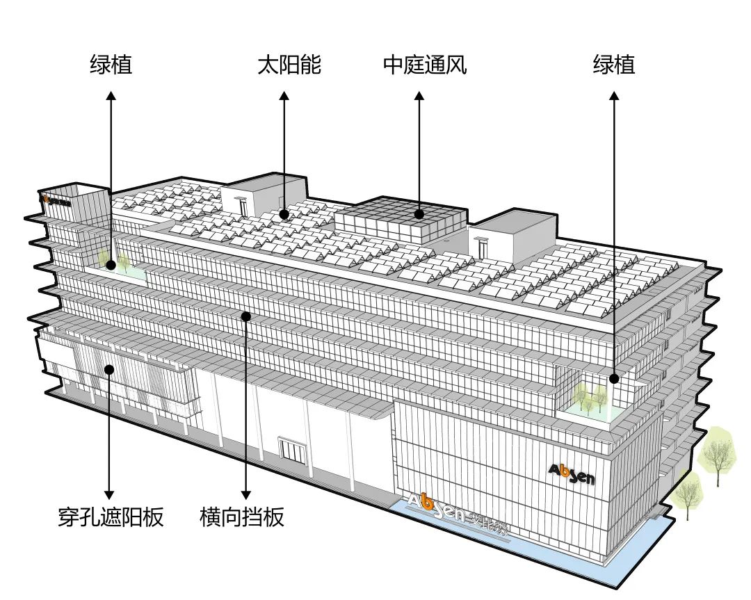 责任与担当是艾比森的优良企业精神,而如今社会的发展所带来的资源的耗尽、环境的污染也警醒着我们,应当通过设计创造对环境负责的生态友好型建筑。项目贯彻绿色低碳的核心设计理念,努力将其打造成绿色节能示范园区。
