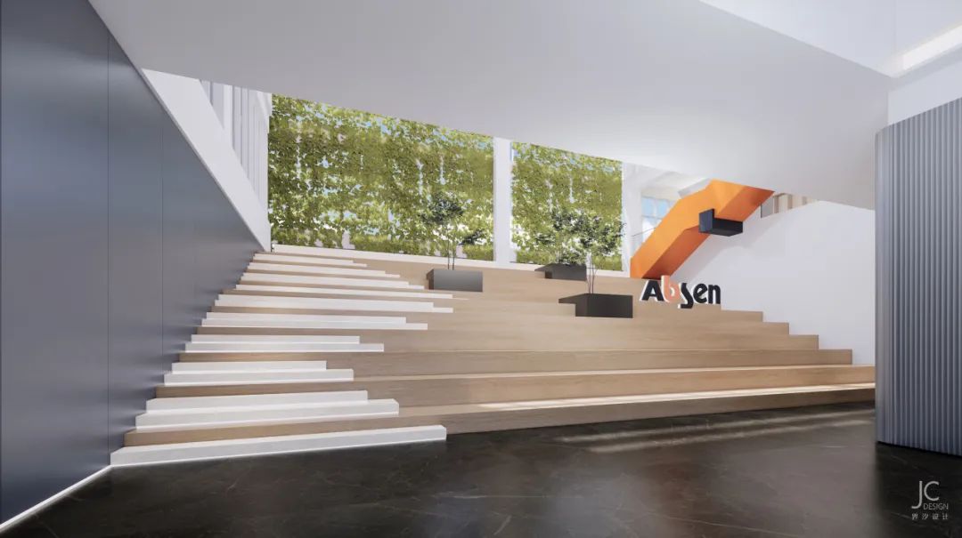 室内楼梯提取艾比森LOGO中积极阳光的“活力橙”作为主题色,向上延伸直至天窗,不仅与积极向上的企业调性完美呼应,更让员工感受到强烈的归属感。每一步台阶,都是对品质的坚持与执着,每一次驻足,都是对团队的热爱与自豪。在这里,共同创造美好、共享成功。