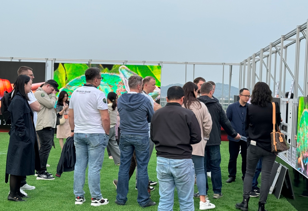 值得关注的是,艾比森在活动中首次面向全球客户开放了户外LED低碳节能展厅,邀请客户沉浸式体验其核心技术与产品优势。展厅集中展示了艾比森在户外LED显示屏材料研发、散热设计及智能控制等领域的创新成果,包括动态节能技术、高亮度显示解决方案及环保制造工艺,吸引了众多客户驻足交流。