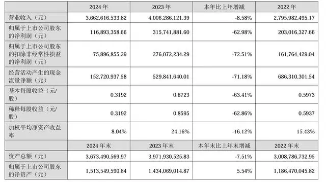 报告期末,总资产余额为36.73亿元,比期初减少7.52%;归属于上市公司股东的所有者权益余额为15.13亿元,比期初增加5.49%;股本为3.69亿元,比期初增加1.44%;每股净资产4.10元,比期初增加4.06%。