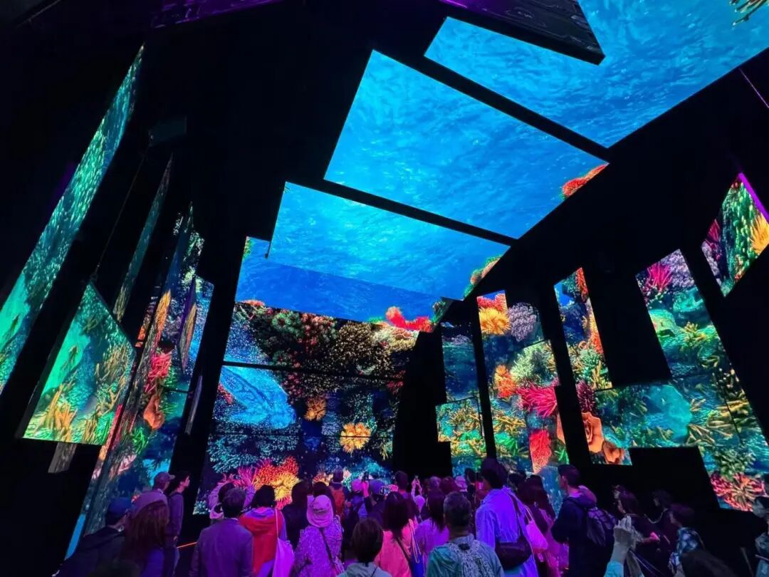 场馆内部,由艾比森PL V2系列产品打造的沉浸式空间,以高精度的图像还原能力以及强大的场景适配能力动态展现澳大利亚的多样化地貌和独特的自然环境。从丰富多样的海洋生态系统到充满活力的热带雨林,澳大利亚最具代表性的自然奇观在眼前一一呈现。游客漫步其间,仿佛置身于不断变幻的光影中,体验从荒漠到海岸的时空穿越之旅。