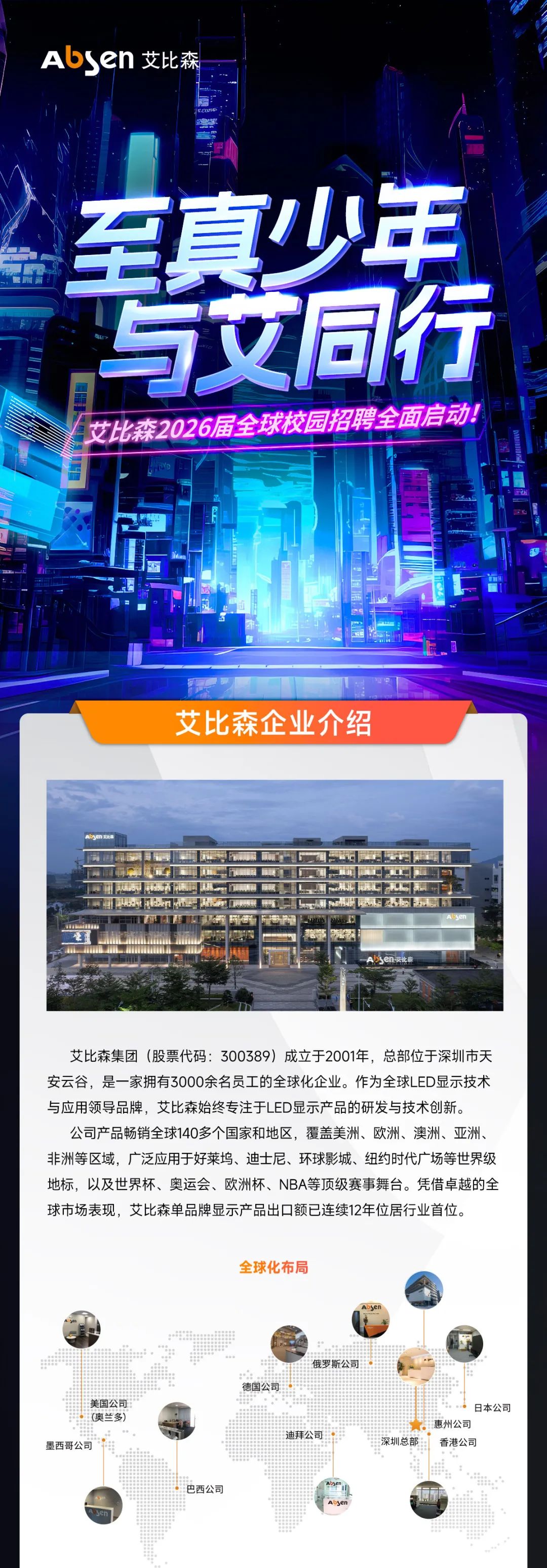 至真少年,与艾同行 | 艾比森2026届全球校园招聘正式启动!