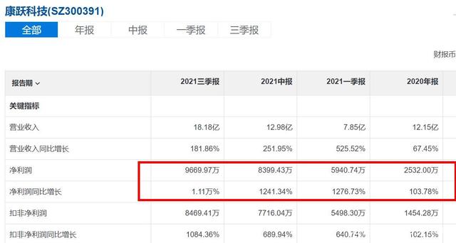 颇具玩味的是,康跃科技今年三季度的财报却让人眼前一亮。2021年三季度,其营收为18.18亿元,同比增长181.86%;净利润9669.97万元,同比猛增1.11万%。