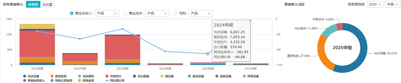 业务层面,主营光伏组件装备的控股子公司羿珩科技,近日因资金紧张正式停产。截至今年三季报,光伏业务占*ST长药总营收的56.32%,虽毛利率仅4.5%,却是公司重要收入来源,其停产将让本就艰难的经营状况雪上加霜。