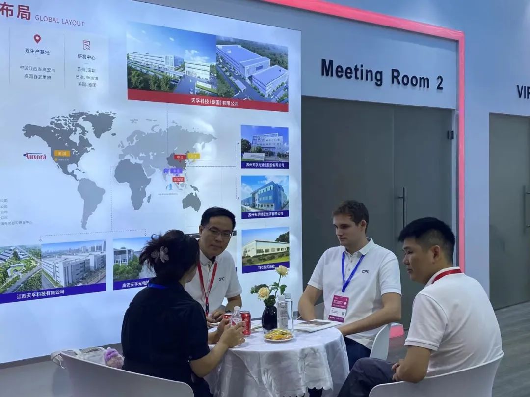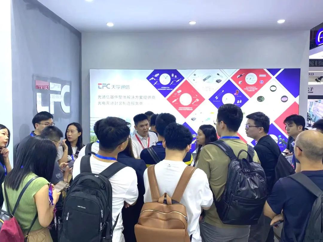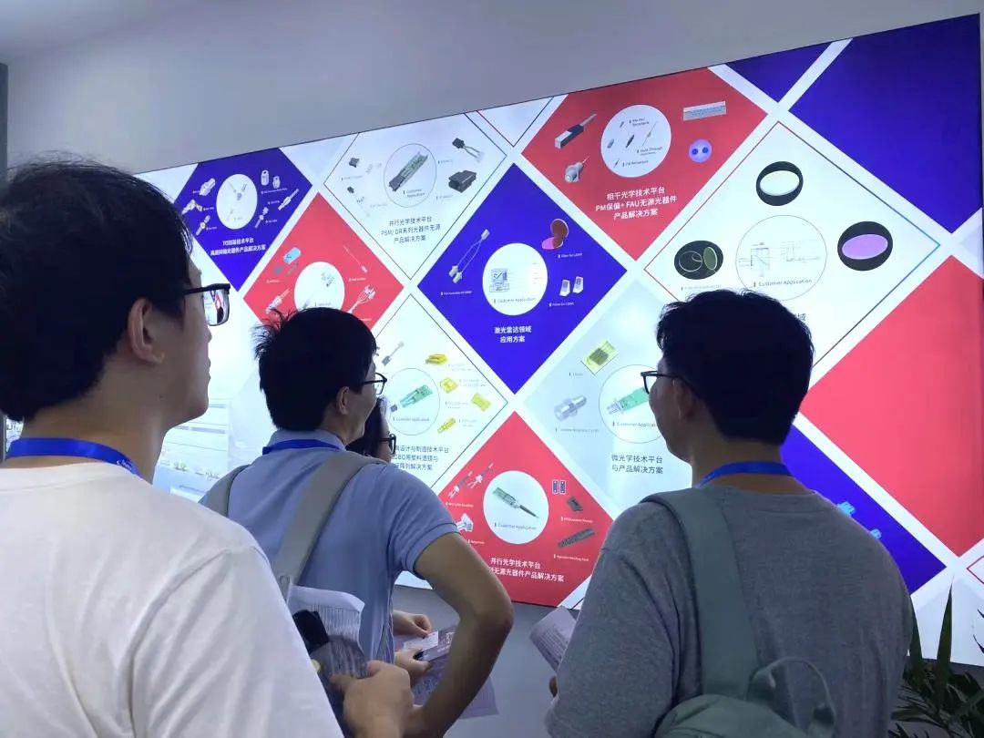 产品方案包括高速率同轴器件封装解决方案,高速率BOX器件封装解决方案,PM保偏+FAU无源光器件解决方案、AWG系列光器件无源解决方案、微光学解决方案等,展台前人流如织,广受业界关注。