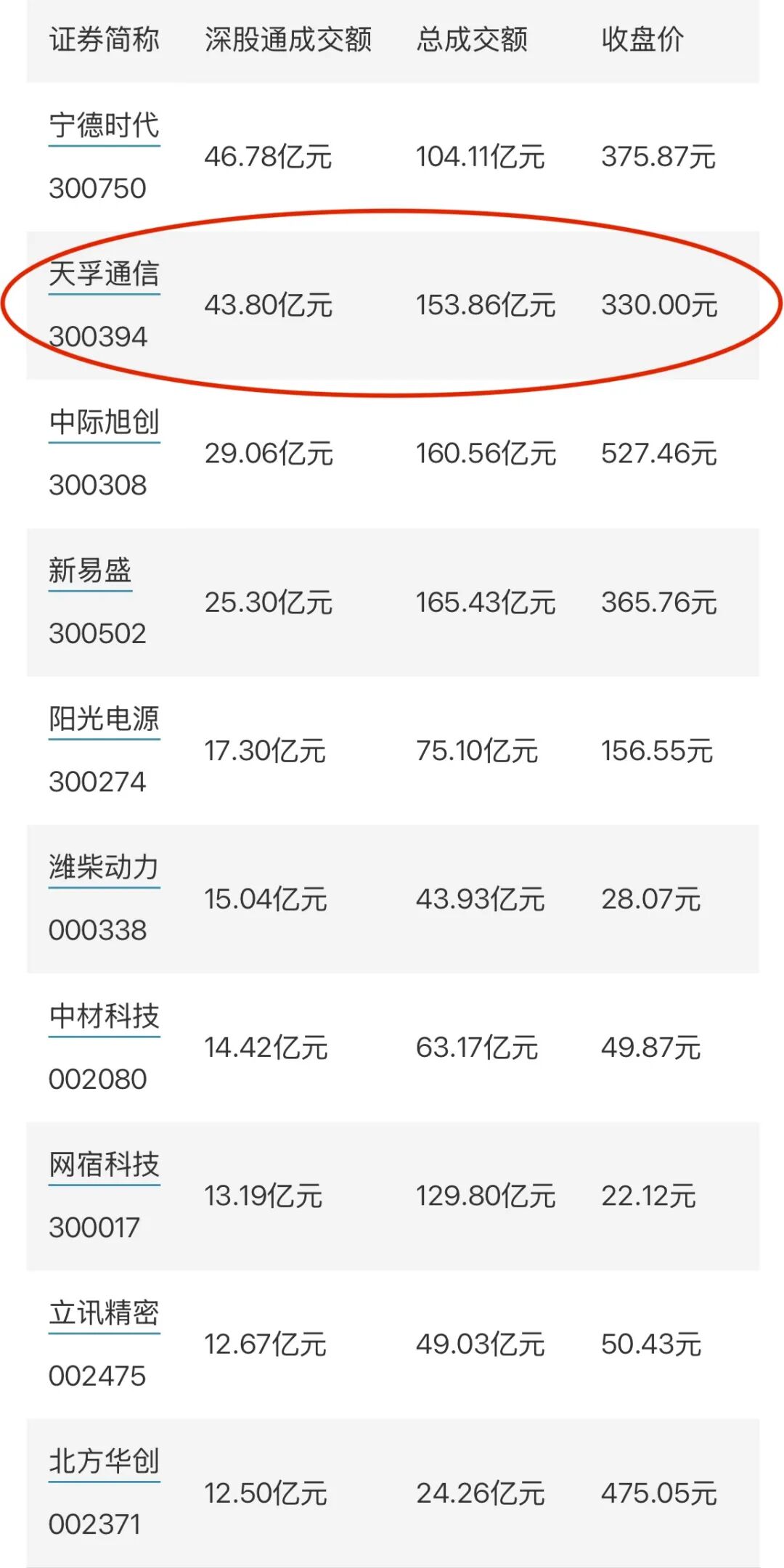 天孚通信2月12日全天成交额153.86亿元,其中深股通成交额43.80亿元,位列深股通成交第二位。