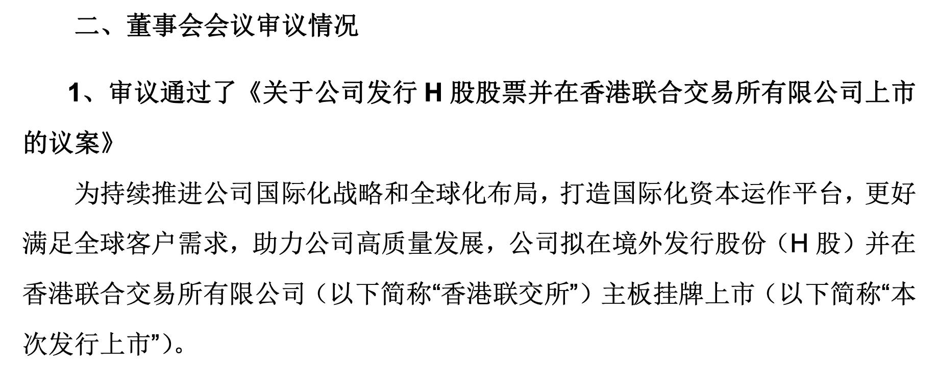 持续推进公司国际化战略和全球化布局,打造国际化资本运作平台,更好满足全球客户需求,助力公司高质量发展,公司拟在境外发行股份(H股)并在香港联合交易所有限公司(以下简称“香港联交所”)主板挂牌上市。