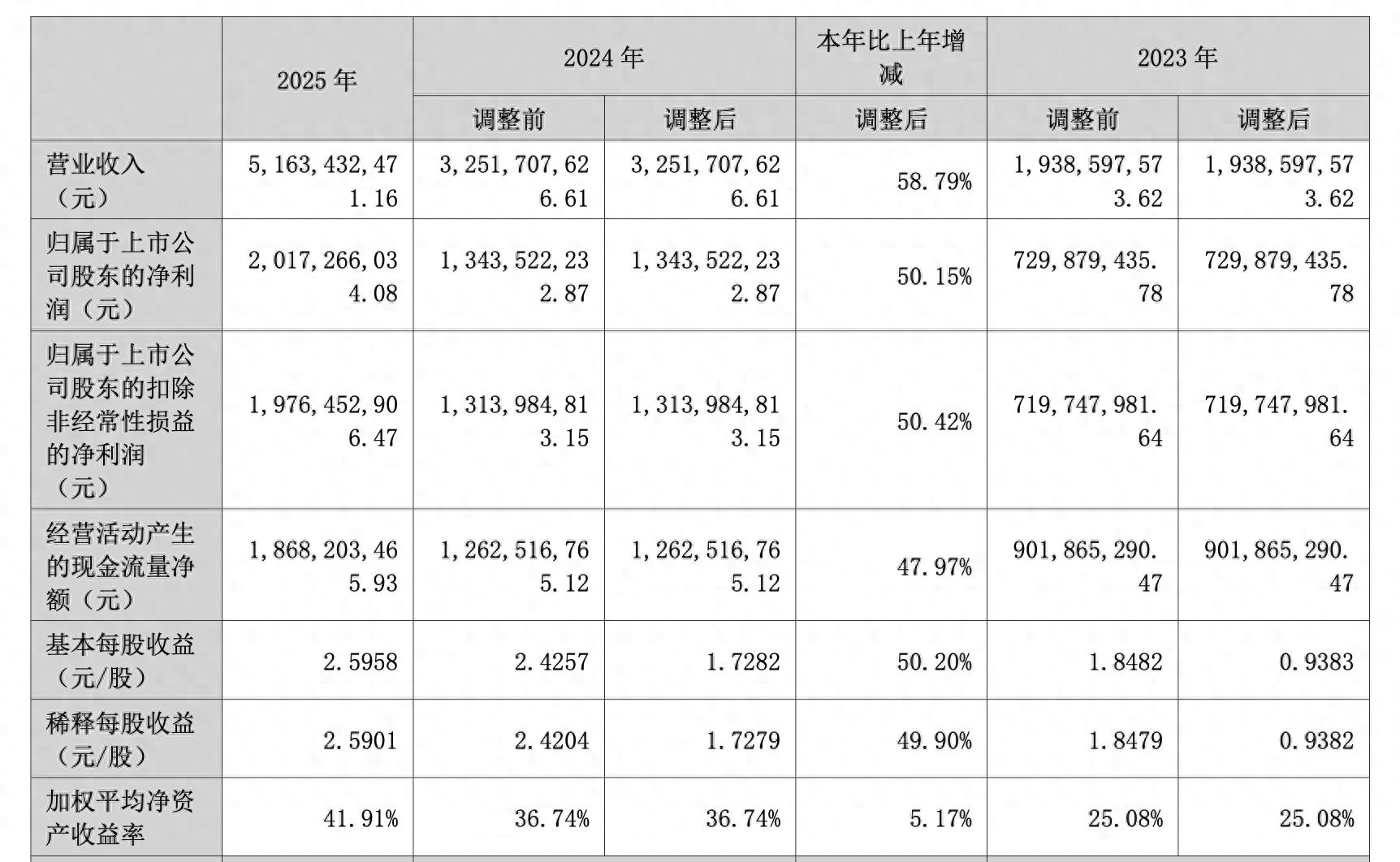 根据公告,公司实现营收为51.63亿元,同比增长58.79%;归母净利润为20.17亿元,同比增长50.15%。