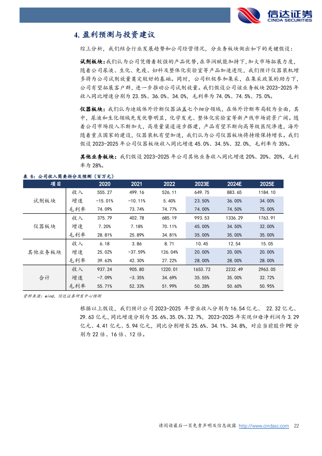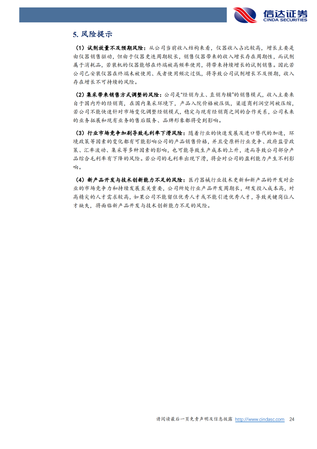 风险提示:试剂放量不及预期风险;集采带来销售方式调整的风险;行业市场竞争加剧导致毛利率下滑风险;新产品开发与技术创新能力不足的风险。