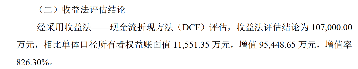 其中,资产基础法评估的结论为,股东全部权益价值评估值约4.9亿元。相较于所有者权益的账面价值增值约3.8亿元,增值率327.87%。收益法评估结论为10.7亿元,增值约9.5亿元,增值率826.30%。最终,花园生物采纳了收益法的评估结论确定了10.7亿元的交易价格。