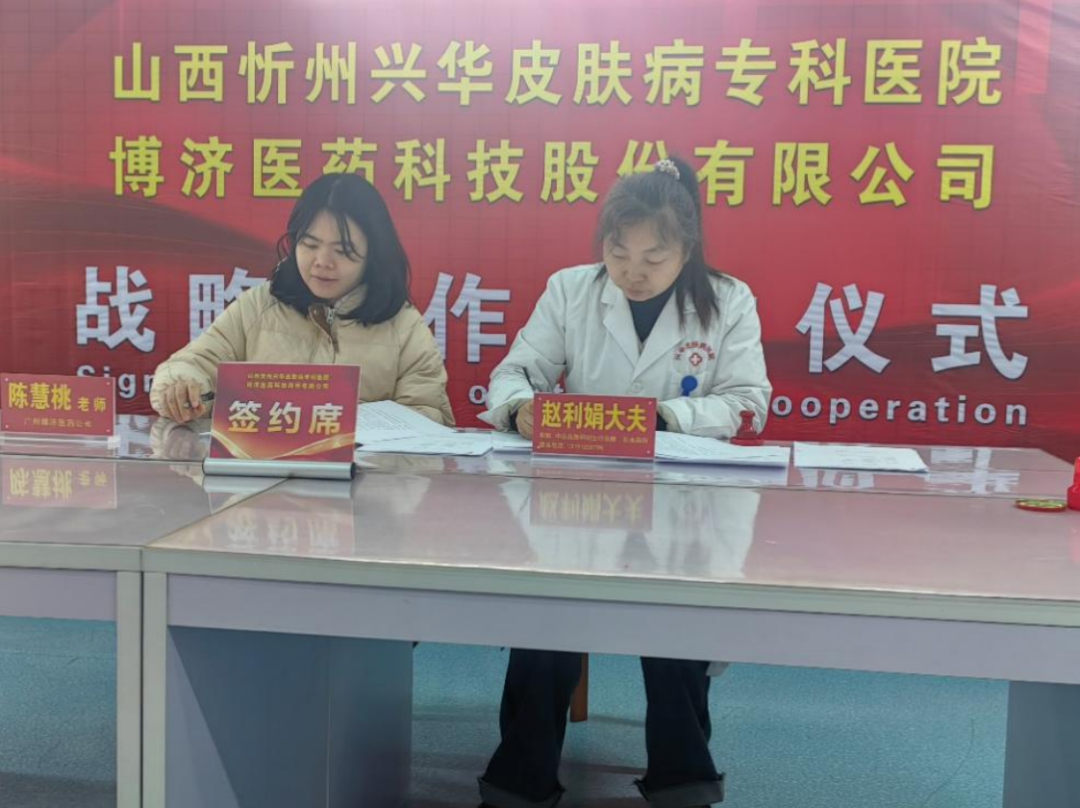 近日,博济医药与忻州兴华皮肤病专科医院在医院二楼会议室就中药1.1类新药治疗脓疱型银屑病项目签订合作。这是双方继去年达成战略合作伙伴后,再度携手开发中药1.1类新药项目。