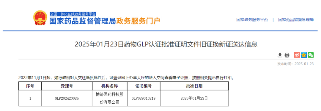 药物评价中心自2018年首次通过国家药物GLP认证以来,不断完善质量保证体系,已连续3次通过国家药物GLP认证检查。此次药物GLP认证复查的顺利通过,对药物评价中心机构质量管理体系运行和研究项目实施管理的认可,也充分体现了博济医药在GLP体系建设方面的完善,为公司一站式综合服务CRO的品牌在GLP方面打下坚实的基础。