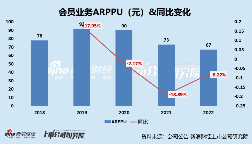 然而,会员价格提升并未带来会员业务ARPPU的提升,在会员业务量价齐升的情况下,全年会员业务收入仅同比增长 6.15%,会员业务ARPPU下降,同比下降8.22%至67元。