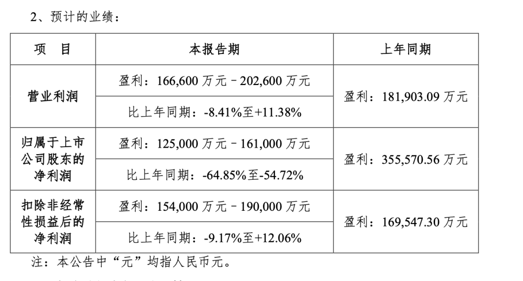 1月17日晚间,芒果超媒(300413)披露2024年度业绩预告,公司全年营业利润预计为16.66亿元至20.26亿元,同比变动区间为-8.41%至+11.38%;归属于上市公司股东的净利润12.50亿元至16.10亿元,同比变动区间为-64.85%至-54.72%;扣非归母净利润预计为15.40亿元至19.00亿元,同比变动区间为-9.17%至+12.06%。