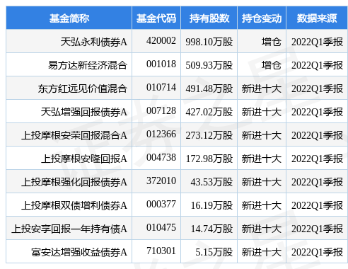 其中持有数量最多的基金为天弘永利债券A,目前规模为35.36亿元,最新净值1.1714(5月19日),较上一交易日上涨0.03%,近一年上涨7.81%。该基金现任基金经理为姜晓丽张寓杜广。