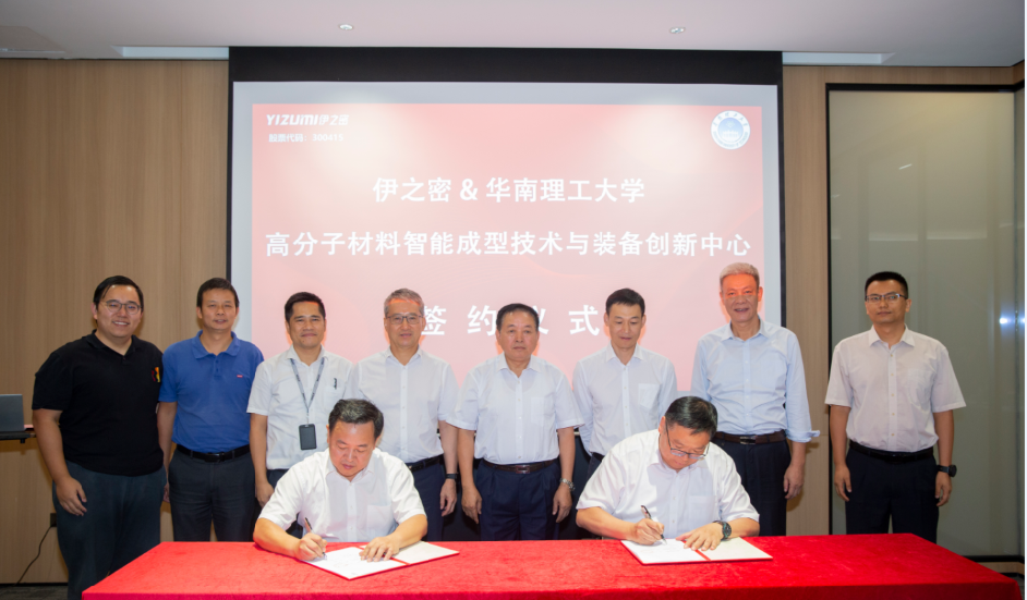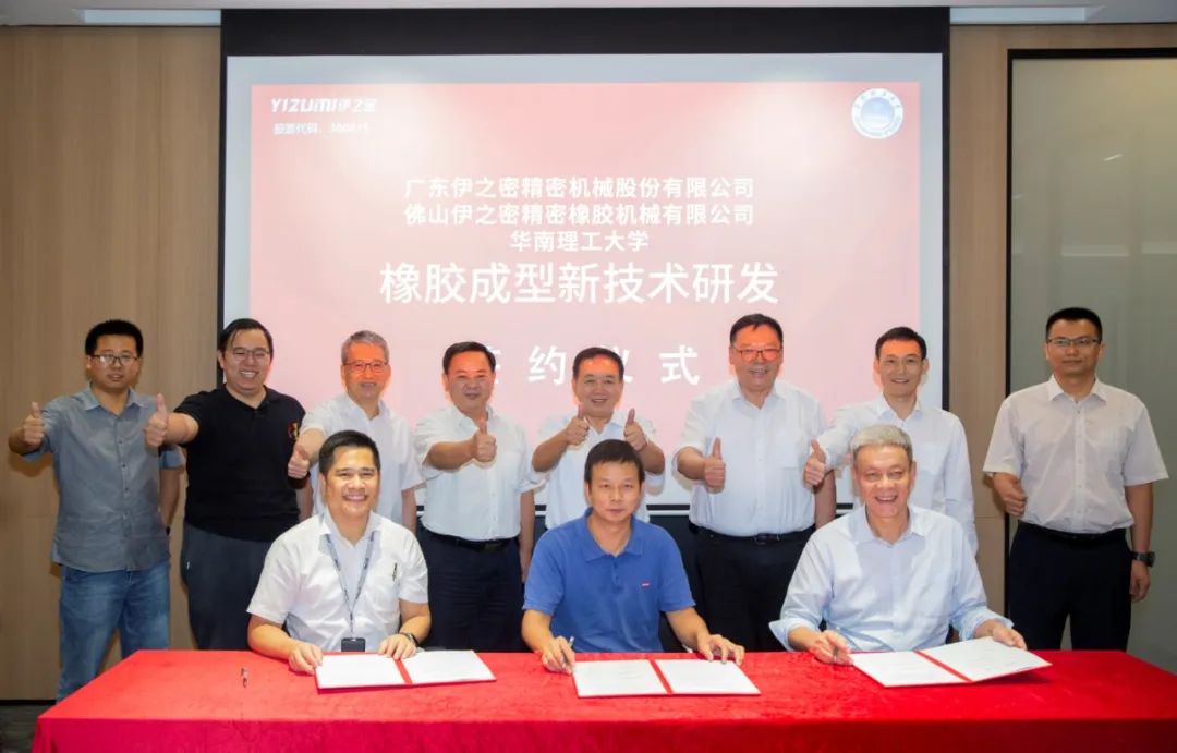 9月30日,广东伊之密精密机械股份有限公司与华南理工大学共建“高分子材料智能成型技术与装备创新中心”的签约仪式在伊之密全球创新中心举行,双方联合开展橡塑成型新技术研发。中国工程院院士、聚合物新型成型装备国家工程研究中心主任瞿金平先生、华南理工大学校长助理房俊东先生、广东伊之密精密机械股份有限公司董事长兼总经理甄荣辉先生出席仪式。伊之密副总经理兼CTO周俊先生主持仪式。