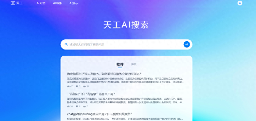 8 月 23 日消息,昆仑万维今日宣布,正式推出国内第一款融入大语言模型的搜索引擎——天工 AI 搜索,并开启内测申请。
