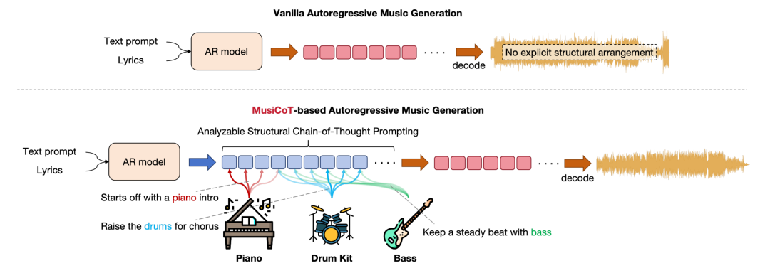 图丨Mureka自研基于MusiCoT的自回归模型音乐生成技术(来源:MusiCoT.github.io)