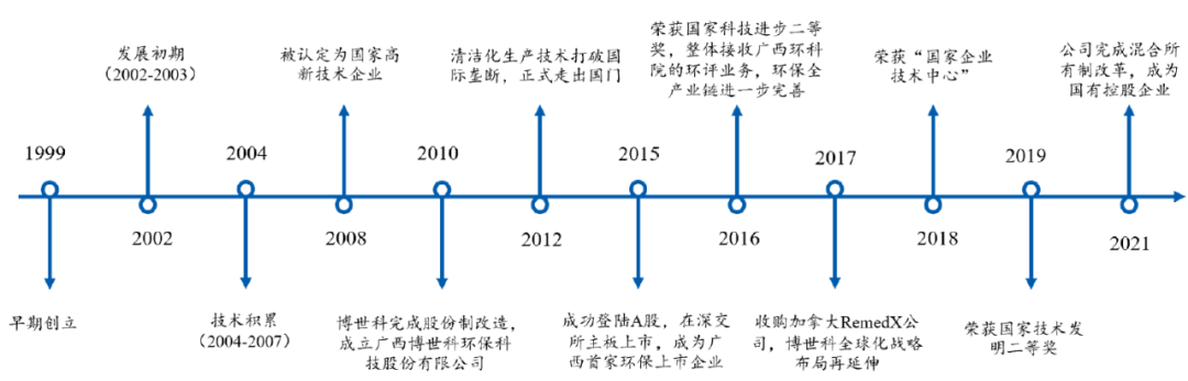 经过多年跨越式的发展,公司在多个细分领域取得国内领头、国际领先的行业地位,多项核心技术荣获国家及省部级荣誉,多项核心装备列入国家鼓励发展重大环保技术装备目录、重点新产品、国内首台套重大技术装备等。2016年,公司构建了上流式多级厌氧-好氧-异相催化氧化的废水处理技术路线,技术成果获得2016年度国家科技进步二等奖;2019年,公司自主研发的“大型二氧化氯制备系统及纸浆无元素氯漂白关键技术及应用”荣获2019年度国家技术发明二等奖,该技术打破加拿大Erco、Chemetics和瑞典Eka等国外企业技术垄断,大幅降低投资成本,实现我国该类产品海外输出零突破。