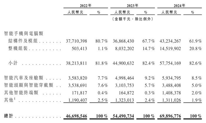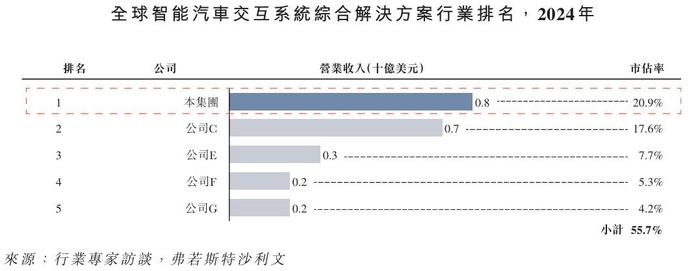 据弗若斯特沙利文资料,按2024年的收入计算,蓝思科技是全球最大的消费电子精密电子结构件及模组综合解决方案提供商,市场份额13.0%;也是全球最大的汽车交互系统综合解决方案提供商,市场份额20.9%。