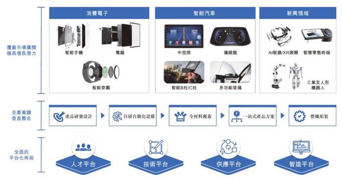 蓝思科技的业务主要集中在消费电子、智能汽车领域,能够为智能手机、电脑、智能穿戴等产品,中控台、仪表盘等车载电子玻璃及组件提供精密制造解决方案。此外,该公司还将业务延伸至智慧零售终端。