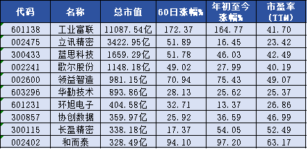 二级市场上,消费电子零部件及组装板块总市值突破千亿的企业共有4家,截至9月5日收盘,蓝思科技总市值达到1659亿元,60日内涨幅达到51.78%,股价表现在板块中处于前列。