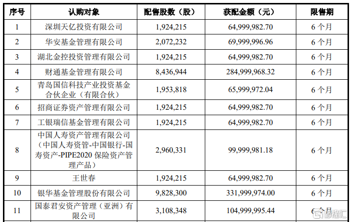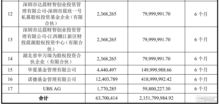 6月16日金雷股份(300443.SZ)公布向特定对象发行股票发行情况报告书,发行人和主承销商确定本次发行股票的发行价格为33.78元/股,发行数量为6370.0414万股,募集资金总额约为21.52亿元。发行对象及其获配股数、认购金额的具体情况如下: