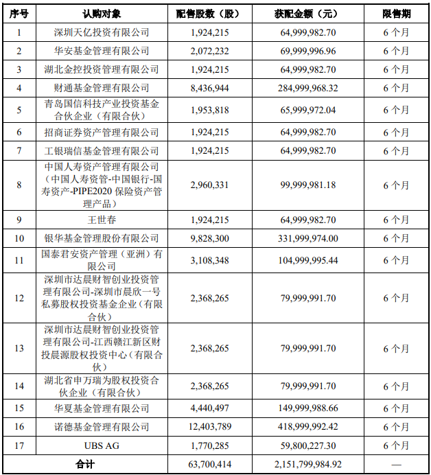 金雷股份6月16日公告,完成定增募资合计21.52亿元,募集资金净额为21.41亿元,共发行A股6370.04万股。其中,诺德基金获配4.19亿元,财通基金获配2.85亿元,华夏基金获配1.50亿元。