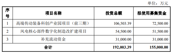 金雷股份(300443.SZ)1月24日披露的2026年度向特定对象发行股票预案显示,公司本次向特定对象发行股票拟募集资金总额不超过人民币155,000.00万元,扣除发行费用后的募集资金净额将全部用于以下项目:高端传动装备科创产业园项目(前三期)、风电核心部件数字化制造改扩建项目和补充流动资金。