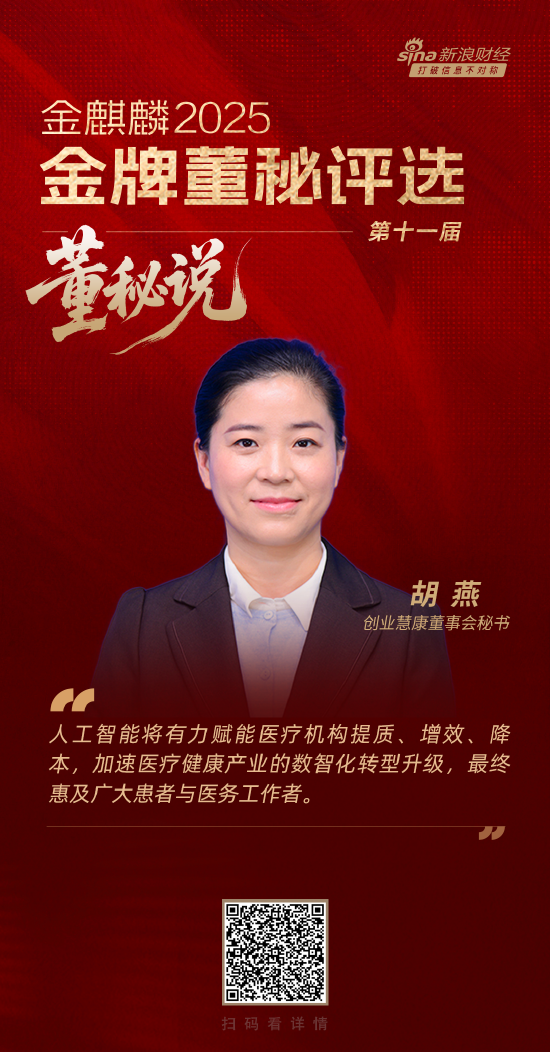 由新浪财经主办的第十一届金麒麟·金牌董秘评选火热进行中!评选期间推出《董秘说》专访活动,助力投资者深入了解上市公司资本价值和发展战略。本期,董秘胡燕做客《董秘说》,带你走进创业慧康>>