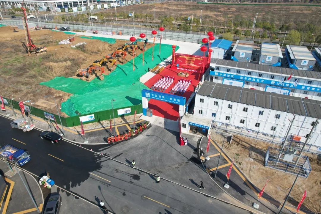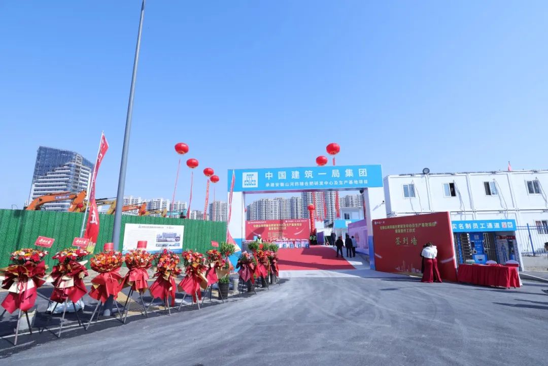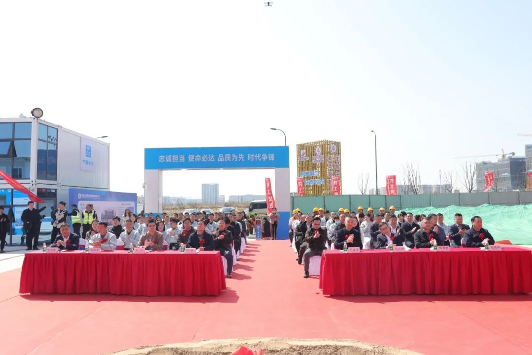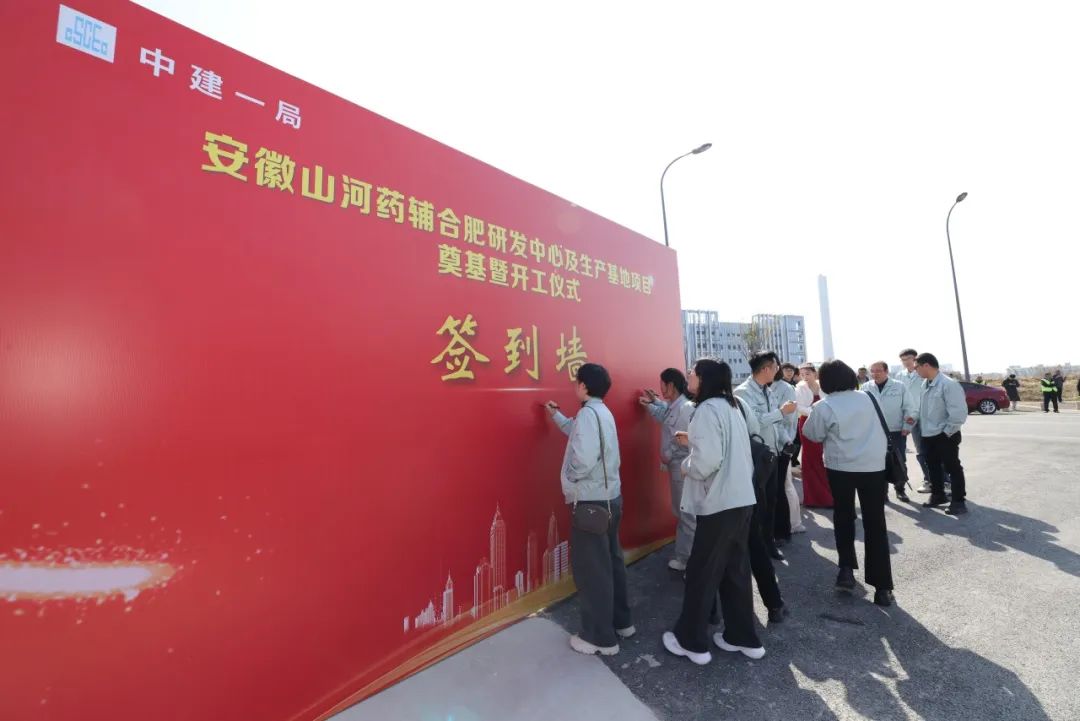 合肥高新区党工委委员、管委会副主任许永,建发局建管中心副主任杨成,山河药辅董事长尹正龙、总经理宋道才,中建一局华东分局副局长马占伟、中建一局合肥建设总经理张英雷在仪式现场前排就坐,建设、施工、监理、设计、勘察单位及山河药辅中高层领导80余人参加庆典活动。