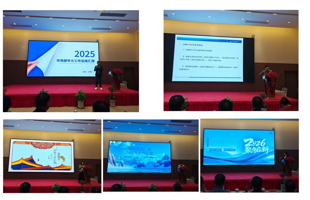 会议于14:30准时开始,一段精心制作的年度业绩回顾短视频迅速点燃全场气氛,带领大家重温了过去一年的拼搏与收获。随后,营销系统各部门依次作工作报告:市场部王经理、合肥公司宋经理、国贸二部尹经理、国贸一部王经理、销售部孙经理分别围绕部门重点工作、业绩亮点与发展规划进行了精彩汇报,内容详实、数据翔实,充分展现了营销系统过去一年的扎实工作与显著成效。