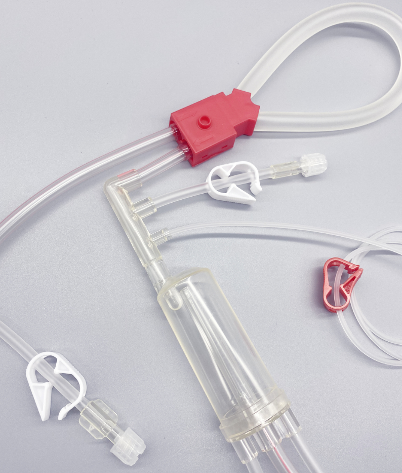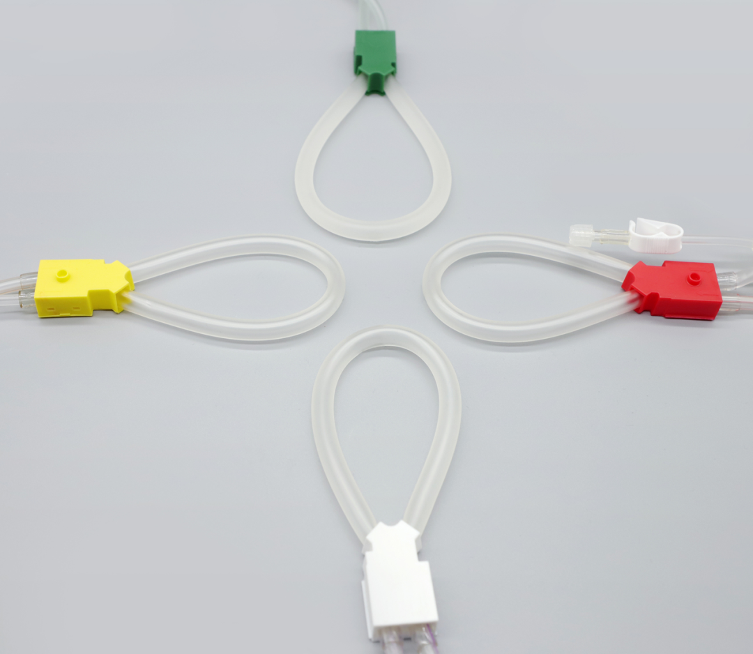 采用独特的四孔接头设计,防止管路弯曲打折,提高治疗安全性。