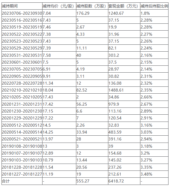 据新浪财经报道,数据显示,彭九莲最初持股293.72万股,占总股本的3.70%。彭九莲从2018年12月27日起,第一次减持三鑫医疗股份,迄今为止,累计减持公司股票555.27万股,累计套现约6418.72万元。