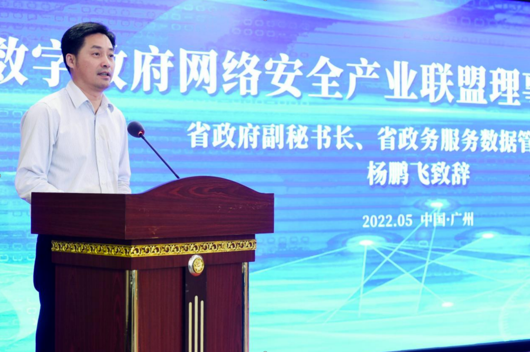 5月12日,数字政府网络安全产业联盟理事会议暨首批理事单位授牌仪式在广州举行。广东省政府副秘书长、广东省政务服务数据管理局局长杨鹏飞出席授牌仪式并致辞。联盟首批 15 家理事单位参加会议。