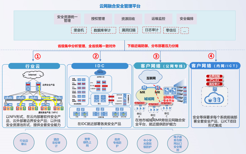 具体来看,深信服将运营商的政企客户群分为两大类:一是已上云客户,包括运营商的公有云、行业云、专属云、私有云,这也是运营商的关键战略,优先引导政企客户上云是大趋势;二是尚未将业务迁入云的客户,这部分客户主要是考虑到数据的敏感性,将业务部署在本地或是托管在运营商IDC机房。