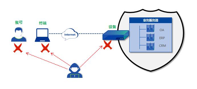 1.不法分子冒用身份接入内网。普通VPN/SDP通常仅支持双因素认证,无法识别和阻断不法分子利用合法账号进行异常登录的行为,如非常用地点登录、账号在新终端登录等异常情形。