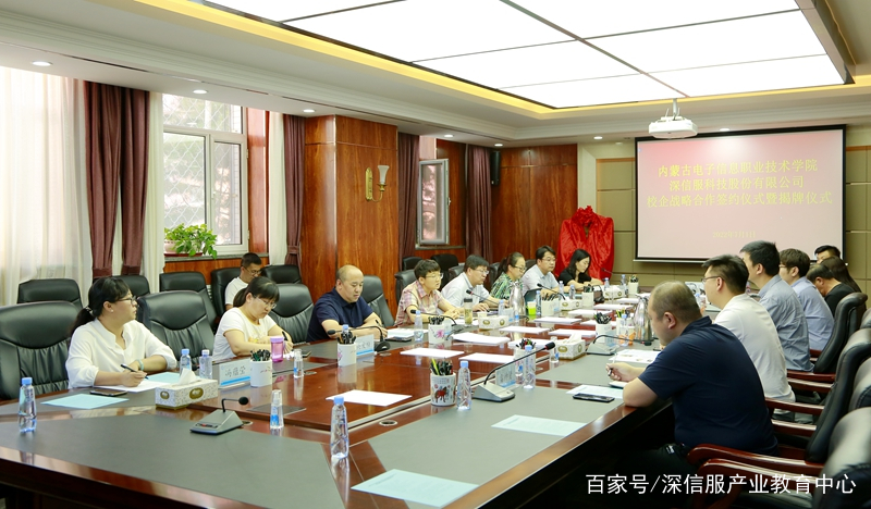 7月1日,深信服与内蒙古电子信息职业技术学院举办校企战略合作签约暨教育部供需对接就业育人项目揭牌仪式。学校党委委员、副校长秦婷,招生就业处副处长靳洪玲,计算机与网络安全学院院长郝俊寿等校方代表出席会议;深信服产教融合部大区负责人邢雷、内蒙办事处主管郭富强、内蒙办事处教育业务负责人唐子民等企业代表出席会议。