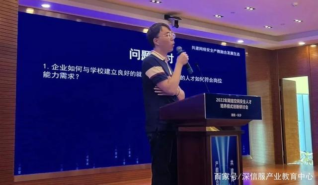 深信服技术认证中心主任石岩出席论坛并参与交流环节,就当前校企合作中院校老师关心的重点问题一一解答。石岩表示,企业应该作为学历教育的有效补充,主动承担人才培养的责任,通过校企携手能更好地搭建人才培养体系、补齐短板,培养实战型人才,推动教学实践深度落地;为让人才培养更加符合产业需求,深信服制定符合行业用人标准的技术认证体系,考核人才能力和岗位匹配度,得到多部委、协会、高校和政企单位的认可,并深入推进“岗课赛证”综合育人,助力学生实现高质量就业。