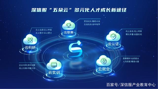 深信服副总裁李洋出席论坛,针对产业发展与人才缺口、人才供需不平衡等问题,介绍深信服“I-CIRCLE”产业人才培养新模式,深信服以学习者为中心,从教学平台与课程研发,到人才认证与就业输出,始终坚持人才培养标准与国内外产业用人需求动态同频,从“学”开始,经历“实训、测评、科研、竞赛、认证”,最后到高质量“就业”,形成复合型人才培养与成长的生态闭环;并就定制化人才培养方案等经验成果做分享,提出深信服“五朵云”多元化人才成长新途径。