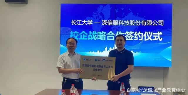 近日,长江大学与深信服举办校企战略合作签约暨教育部供需对接就业育人项目挂牌仪式,双方就人才定向培养、共建就业实习基地、共建安全运营中心、承接国培(省培)师资培训、开展全国社会化服务等多方面达成合作。学校副校长周思柱、计算机科学学院书记黄群俊、副院长詹炜、网络工程专业系主任陈中举等校方代表出席,与深信服产教融合中心主任吕沐阳、教学教研中心副主任黄浩、产教融合大区负责人彭杰、湖北办教育主管吕鹏飞、湖北办教育方案总监刘桥等企业代表深入座谈。