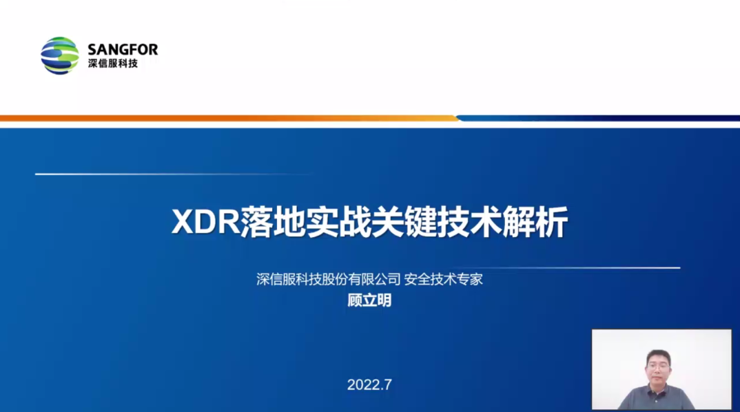 深信服安全技术专家顾立明受邀参加大会,并发表了“XDR落地实战关键技术解析”的主题分享。