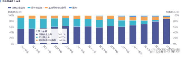 而且收入增长的同时,收入结构也在变化。2022H1,深信服来自企业的收入历史性地突破40%,达到41.56%。政府及事业单位的收入占比降至45.5%。结合第二部分云计算业务收入占比的持续提升,说明深信服的转型已经出现积极变化。