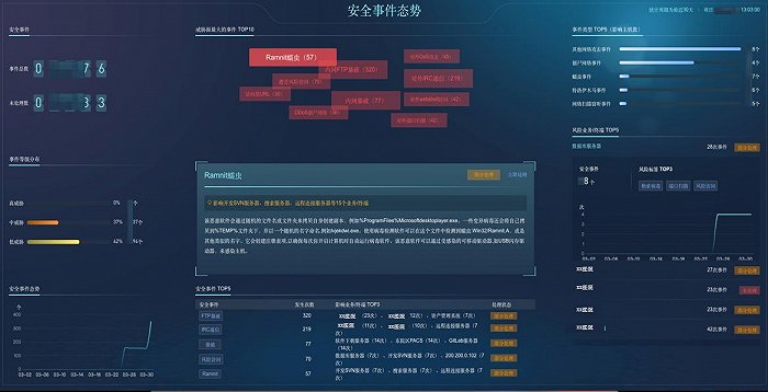 在东莞市卫生健康信息数据中心部署监管预警技术平台,在公立医疗卫生机构部署安全数据采集探针,通过对全市各医疗卫生机构流量数据的采集和系统性分析,实现全网安全风险实时化监测。