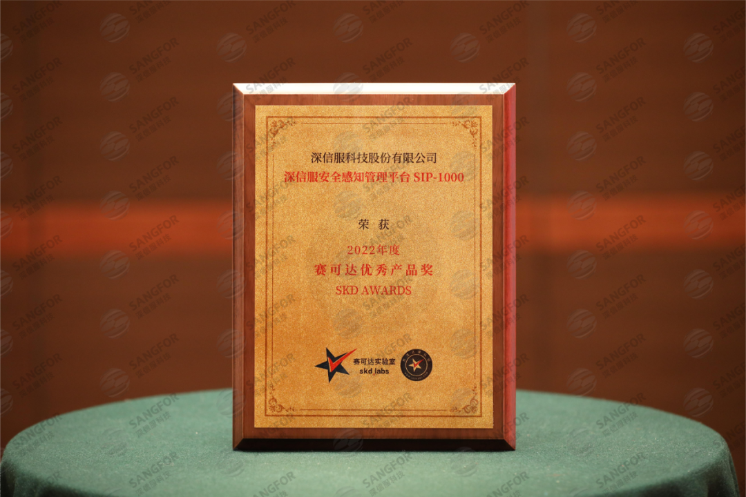 近日,赛可达实验室在北京举行了备受期待的2022年度赛可达优秀产品奖(SKD AWARDS)颁奖盛典,深信服终端安全管理系统EDR(简称深信服EDR)、安全感知管理平台SIP(简称深信服SIP)在众多国内外产品中脱颖而出,以优异表现上榜。