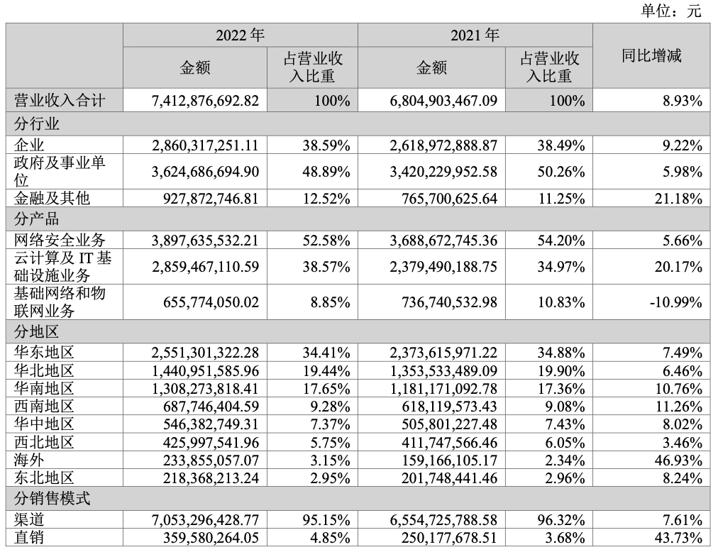 深信服 2022 年营收 74.13 亿,同比增长 8.93%;净利润 1.94 亿,同比减少 28.84%。