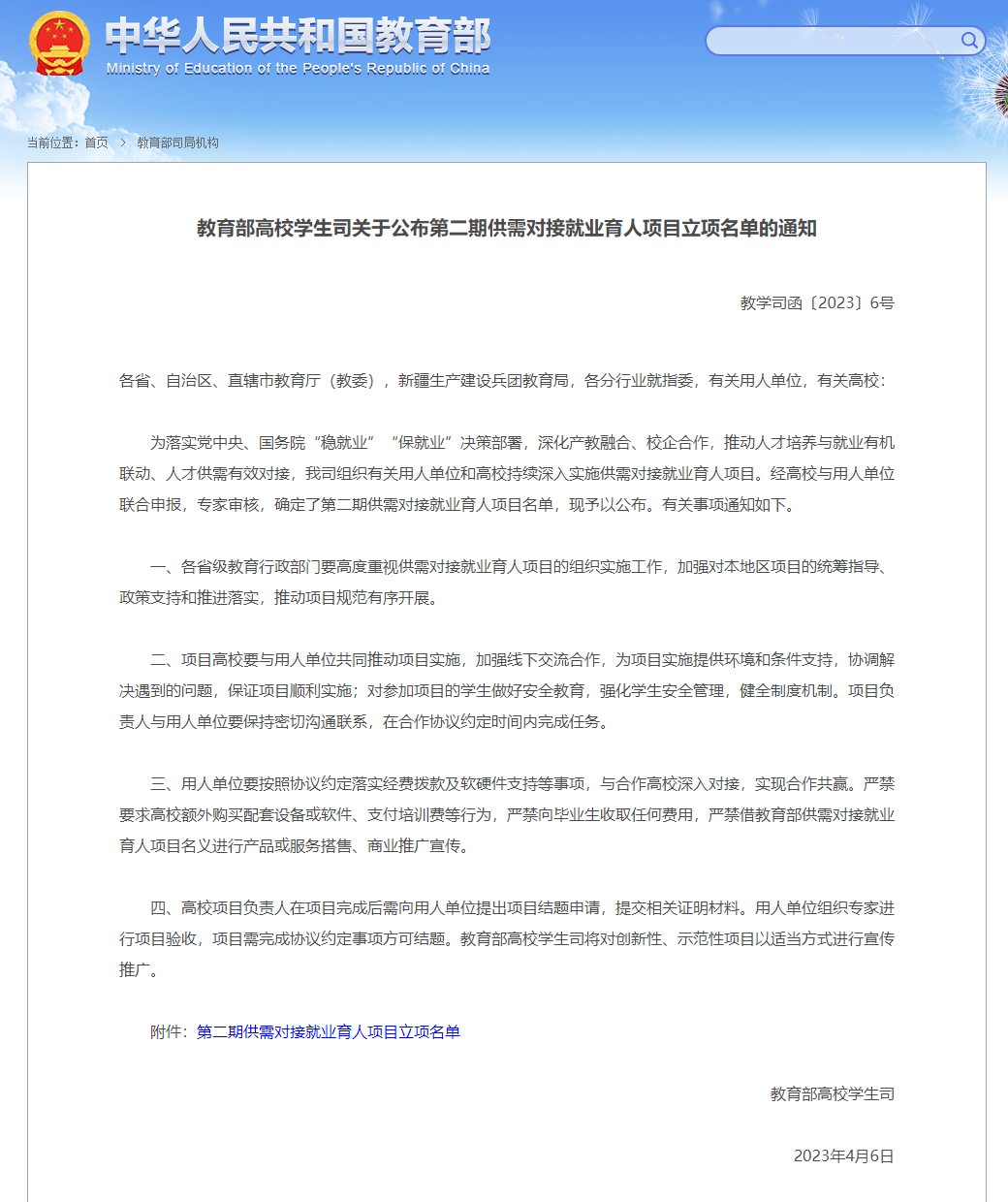 近日,教育部高校学生司发布《关于公布第二期供需对接就业育人项目立项名单的通知》(教学司函〔2022〕7号)。深信服携手214所院校共250个项目获第二期立项,将持续推动人才培养与就业有机联动、人才供需有效对接,促进高校毕业生就业,为国家培养高质量的技能型人才。