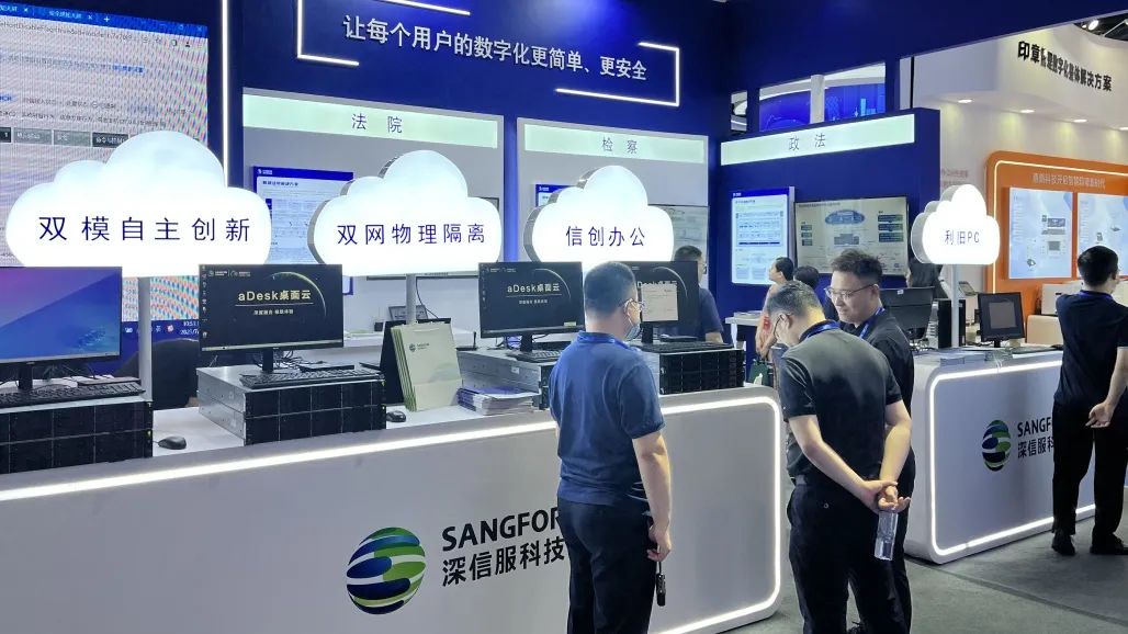 “2023政法智能化建设技术装备及成果展”于2023年7月10日在北京国家会议中心盛大开幕。本次政法展由法治日报社、北京安全防范行业协会主办,北京法安网络文化传媒有限公司(法安网)承办,深信服受邀参展,携“数字检察”、“智慧法院4.0”、“智慧司法”、“视频专网安全”等多个政法行业方案精彩亮相,并重点展示了桌面云多场景应用方案,成功吸引了全国众多法院、检察院、司法、行政、戒毒、律所、科研机构等行业专家及业内人士莅临展台并进行深度交流。同时,由深信服打造的检察工作网桌面云大数据平台也成功入选“2023 政法智能化建设智慧检务创新产品”。