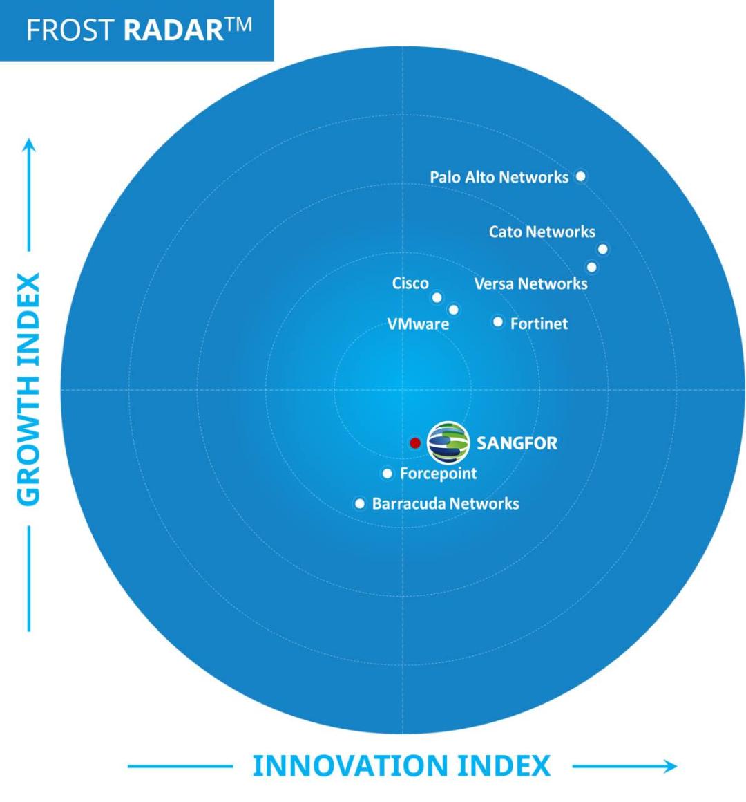 近日,深信服在国际知名市场研究机构弗若斯特沙利文(Frost & Sullivan)的年度报告——《Frost RadarTM:2023年全球安全访问服务边缘SASE市场》中被评为「领导者」,并成为亚太区唯一入选该报告的厂商。